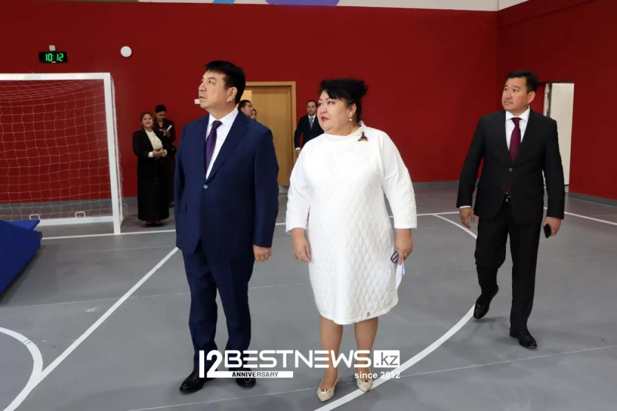 Данное образовательное учреждение построили в рамках госпрограммы "Комфортная школа". Здесь только спортзала - четыре, школа имеет три отдельных, и, соответственно, три блока. Сейчас здесь начнут обучение 1600 учащихся, но поскольку район - прт- Мангилик ел активно застраивается, здесь готовятся принять дополнительное количество учеников.