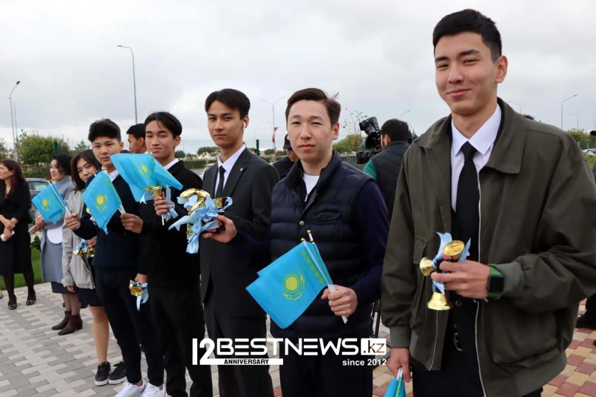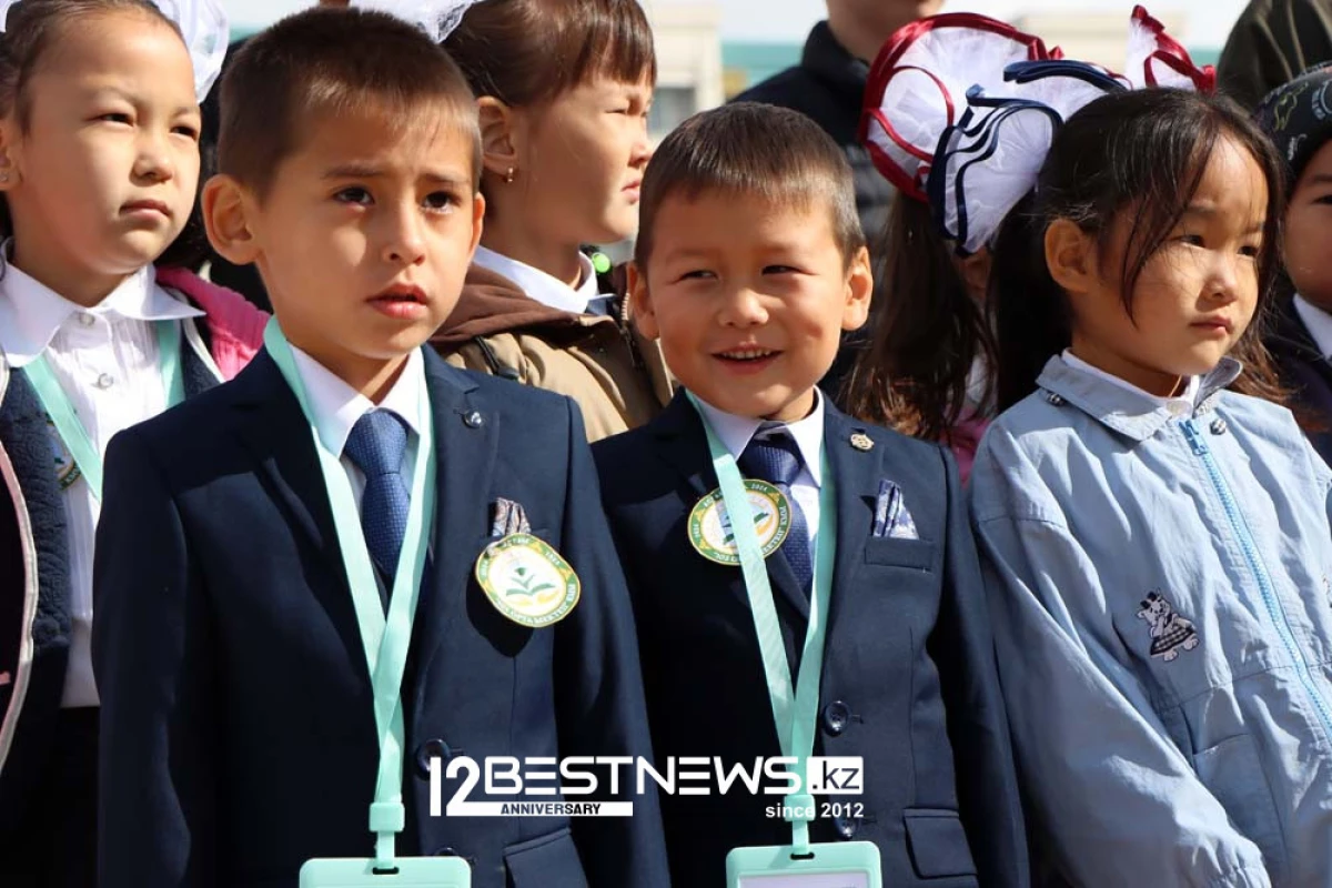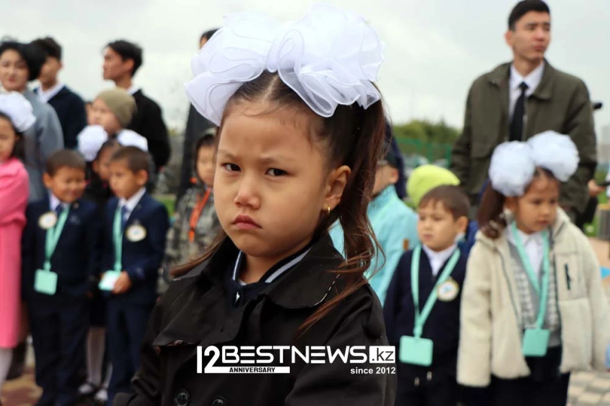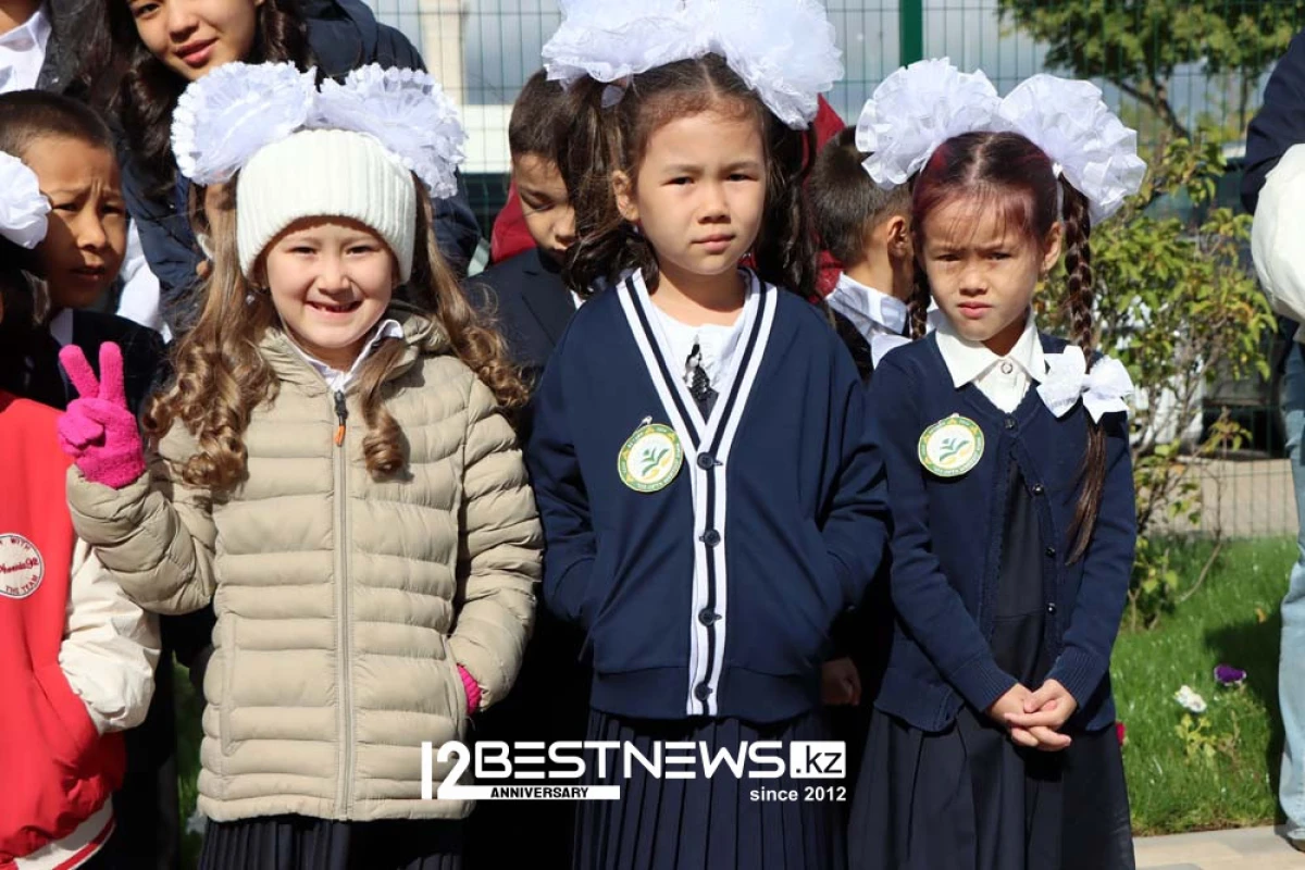 В торжественной линейке принял участие министр просвещения Республики Казахстан Гани Бейсембаев. Линейка была короткой - потому что на улице было пасмурно, и начал накрапывать дождь.