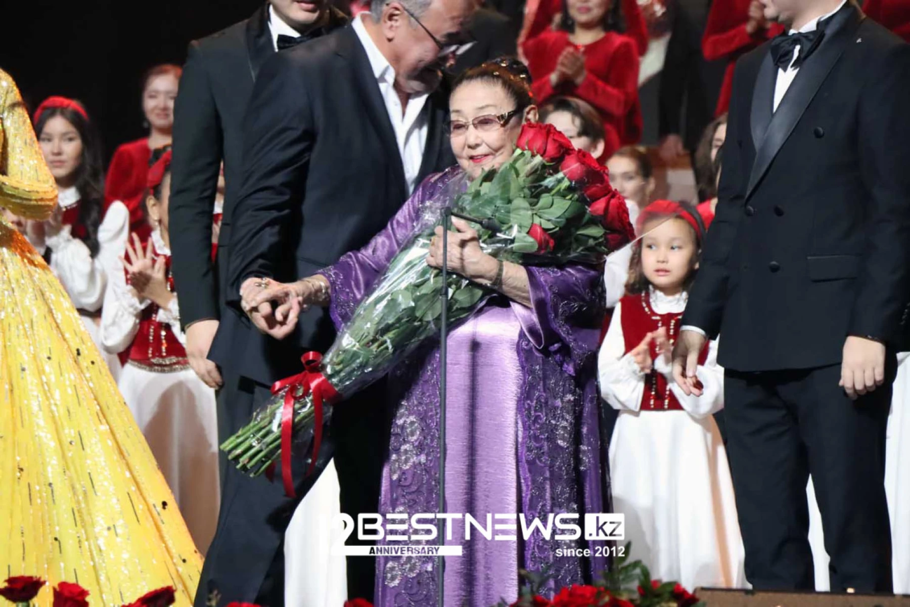 На сцене театра "Астана Опера" прошел юбилейный концерт по случаю 95-летия Бибигуль Ахметовны Тулегеновой.