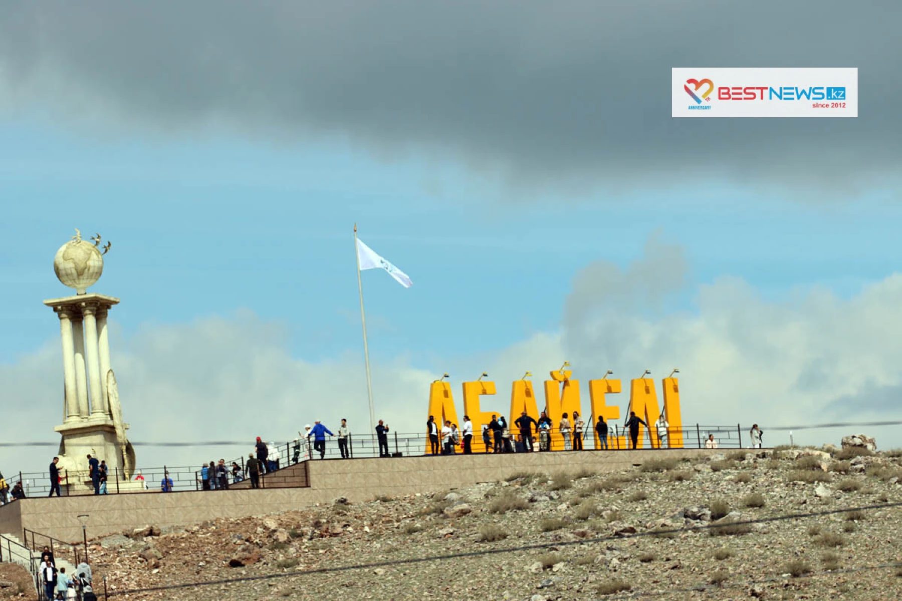 Здесь установили 184 праздничные белые юрты, а также специально создали смотровую площадку на одной из сопок. Здесь установили гигантские буквы - Абай Елi. Это место сразу стало самым посещаемым. С этой высоты место празднества было видно как на ладони - включая и домбру, которую из брусчатки выложили внизу на площади.