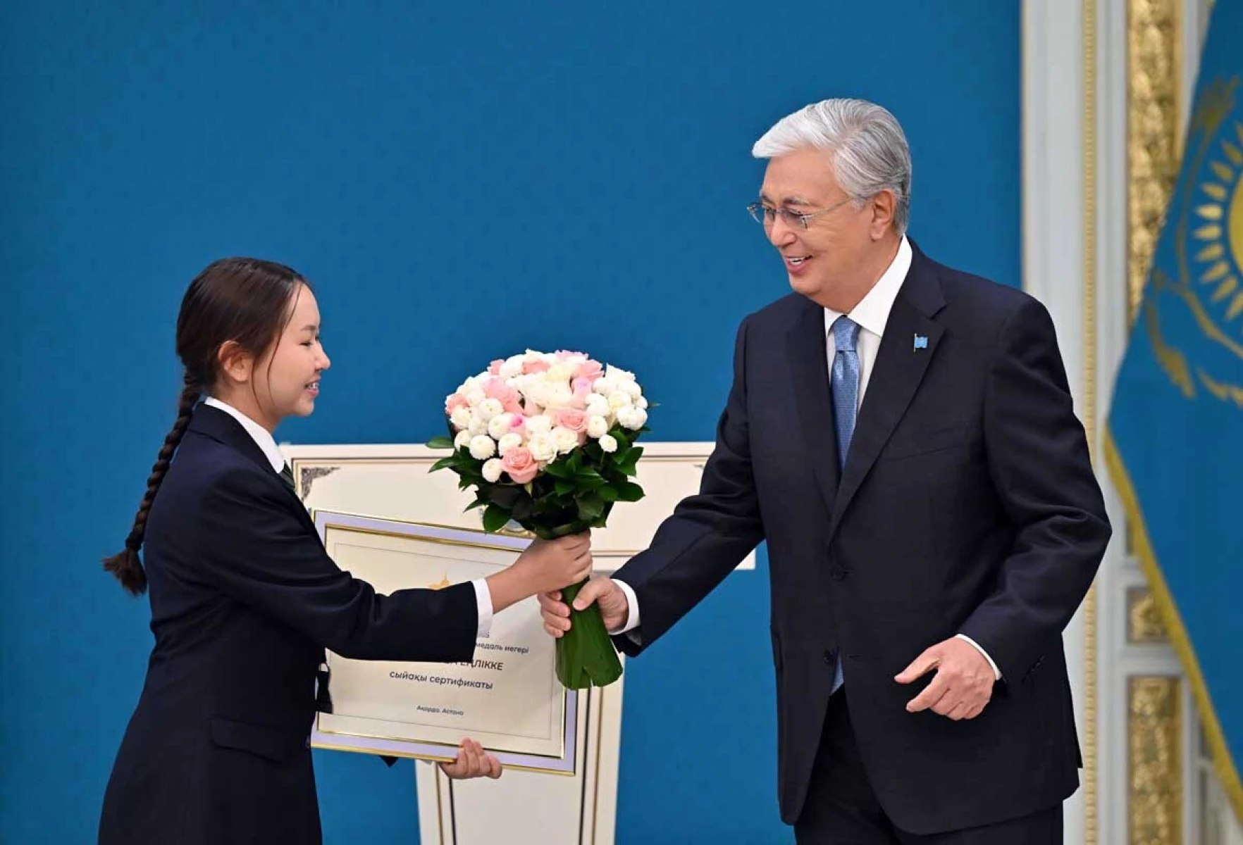 – Наш флаг поднимается ввысь на мировых спортивных и творческих аренах в честь побед наших юных соотечественников. Высок престиж страны в сфере образования. Мы гордимся каждым победителем, защищавшим честь Казахстана за рубежом. Я вижу в вас достойных граждан нашей страны. Абсолютно уверен, что в будущем вы внесете значительный вклад в развитие Казахстана, – добавил Президент.