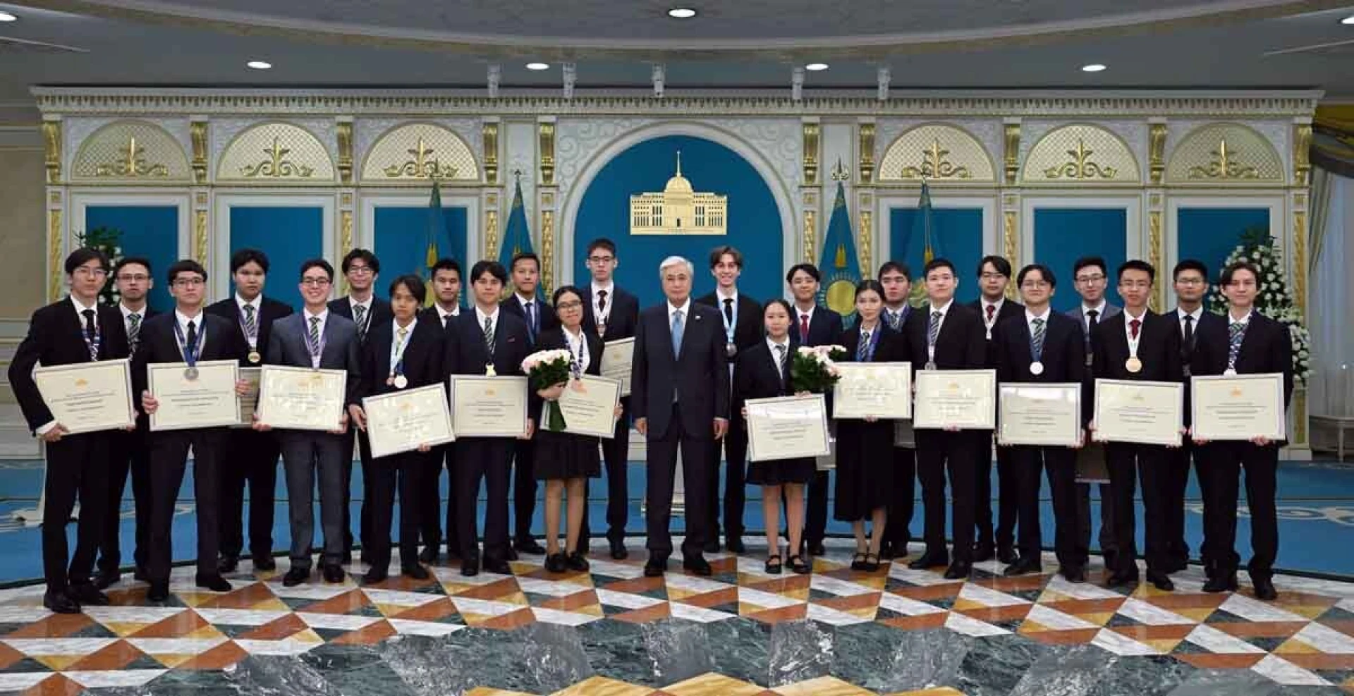 В резиденцию Главы государства пригласили 24 лауреатов, в числе которых - 4 обладателя золотых, 11 – серебряных и 9 – бронзовых медалей. Юные казахстанцы завоевали их в таких дисциплинах, как химия, математика, физика, география, информатика и биология.