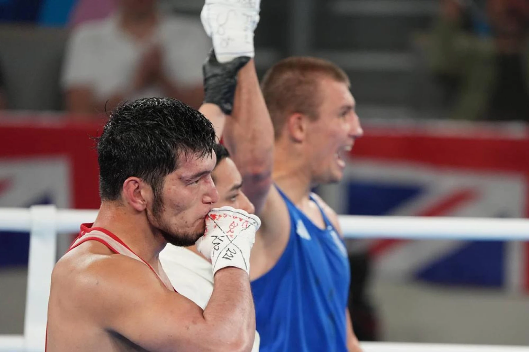 В весе до 82 кг решалась судьба титула олимпийского чемпиона. Раздельным решением судей победу присудили Хижняку, Оралбай - серебряный медалист.