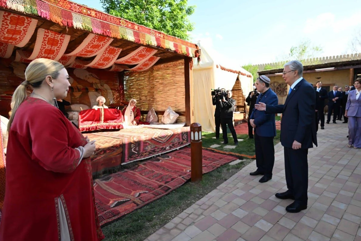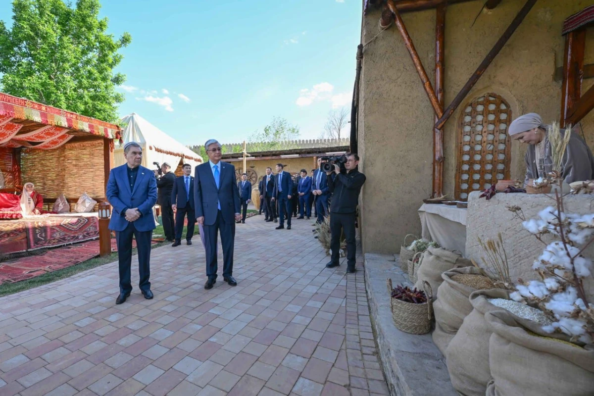 Касым-Жомарт Токаев и Гурбангулы Бердымухамедов осмотрели восточный базар, где были представлены разнообразные виды зерновых культур. Затем они ознакомились с национальными блюдами и работами мастеров таких народных ремесел, как деревообработка, ткачество, войлоковаляние, гончарное ремесло и ювелирное искусство. Продолжением программы стала театрализованная постановка, посвященная казахским обычаям и обрядам.