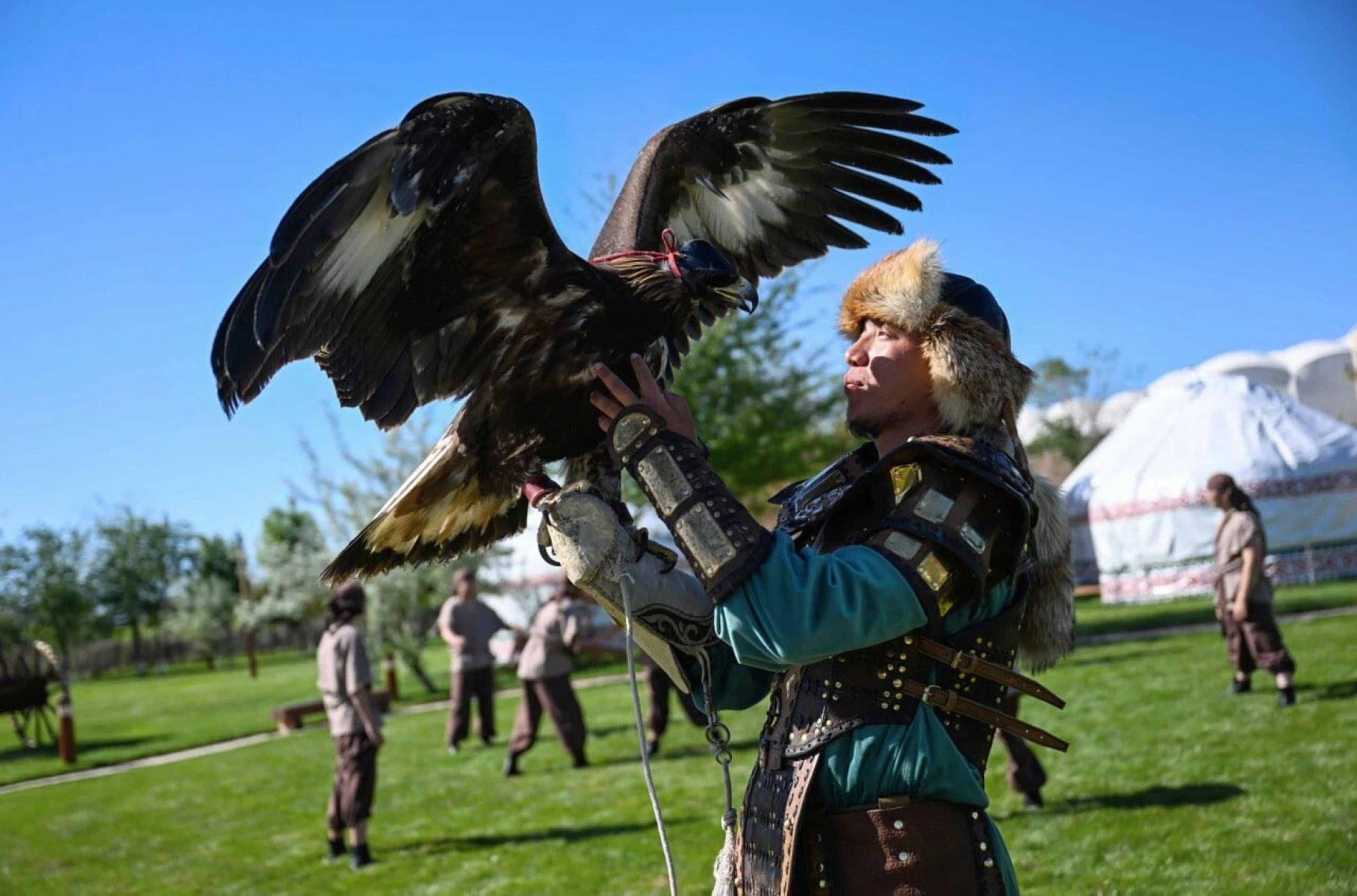 Кроме того, были продемонстрированы навыки собак породы тазы и ловчих птиц.