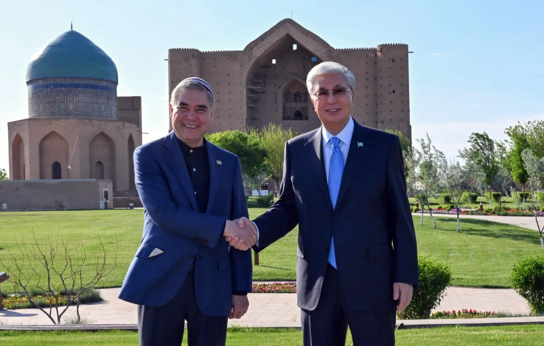 Президент Казахстана и Председатель Халк Маслахаты Туркменистана посетили мавзолей Ходжи Ахмеда Яссауи, сообщает Bestnews.kz со ссылкой на пресс-службу Акорды.